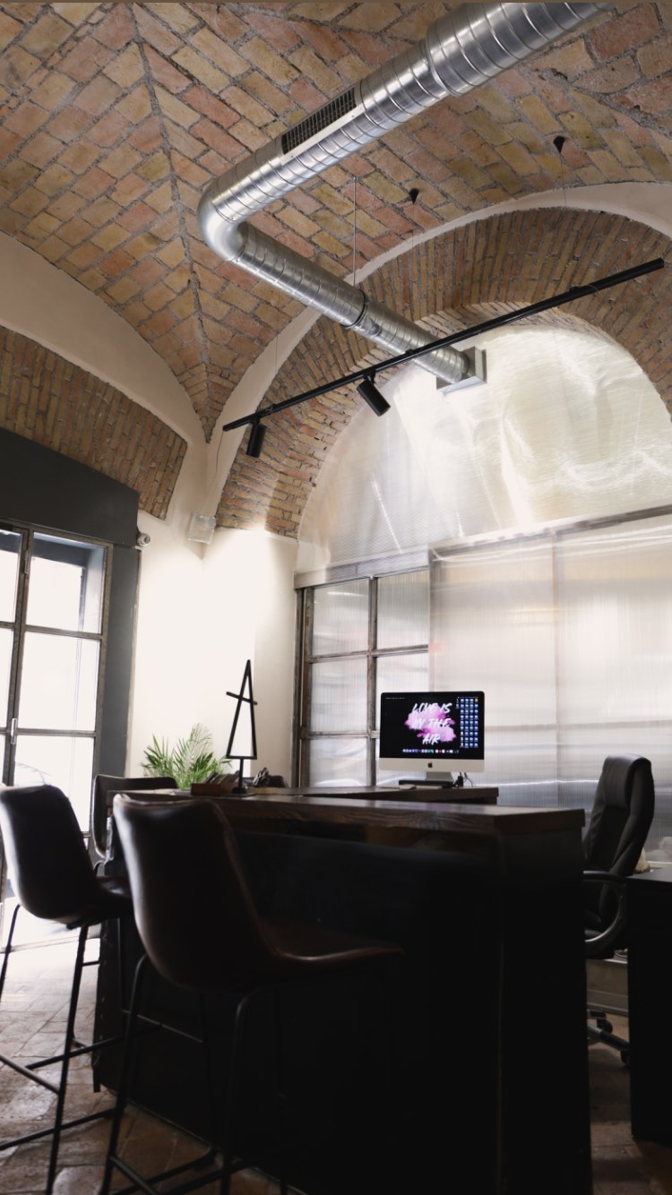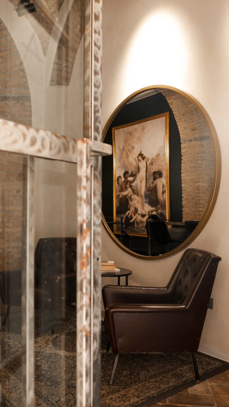 Un'area dedicata all'accoglienza e alla consulenza, dove ogni progetto prende forma attraverso il dialogo tra artista e cliente.